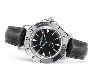 Механические часы с автоподзаводом, противоударные, водонепроницаемые (глубина погружения до 200м). Корпус часов изготовлен из высококачественной стали. Органическое стекло предназначено для глубоководных погружений и может выдержать сильное механическое давление. Ремешок из натуральной кожи.